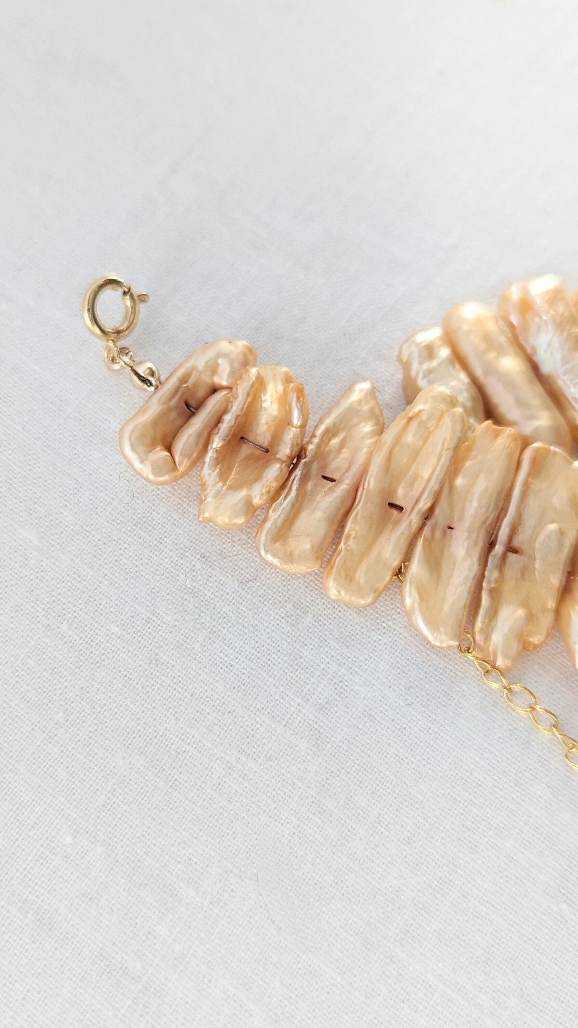 ぷっくり感がかわいい染めのバロックパールのブレスレットです