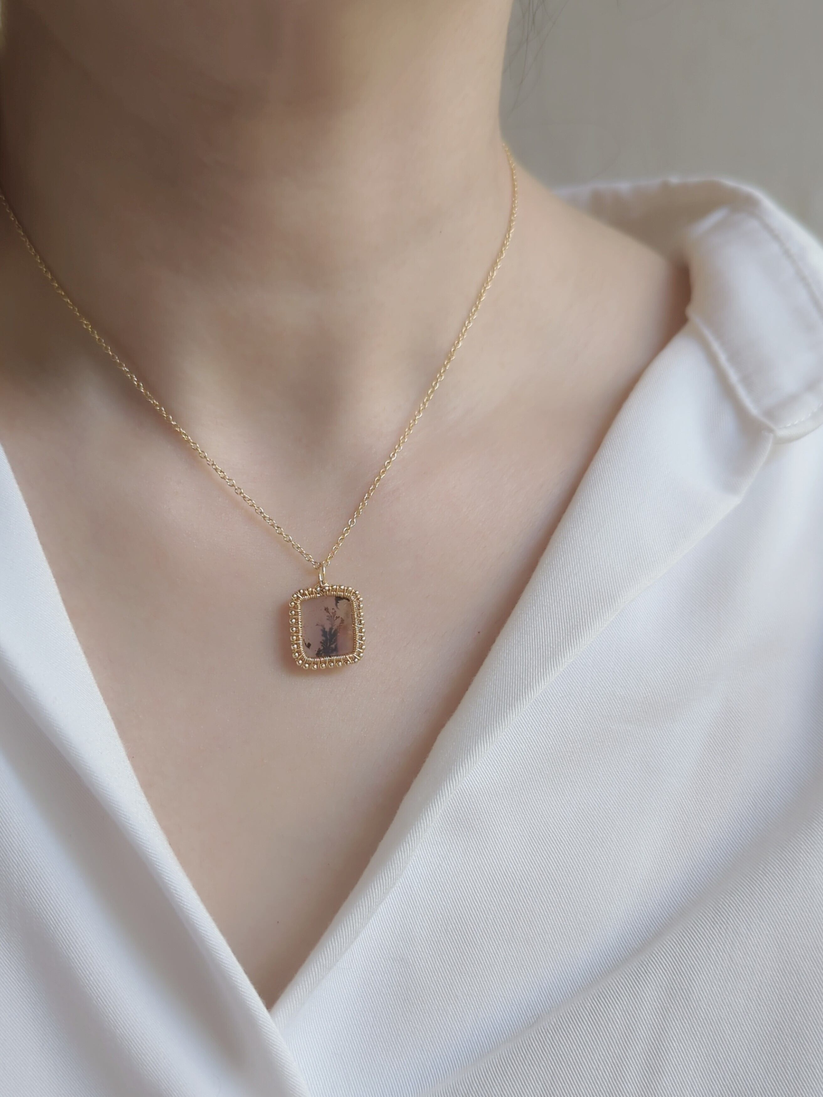 デンドリティックアゲートペンダントトップ(レクタングル) チェーン別売14kgf (06_3)
