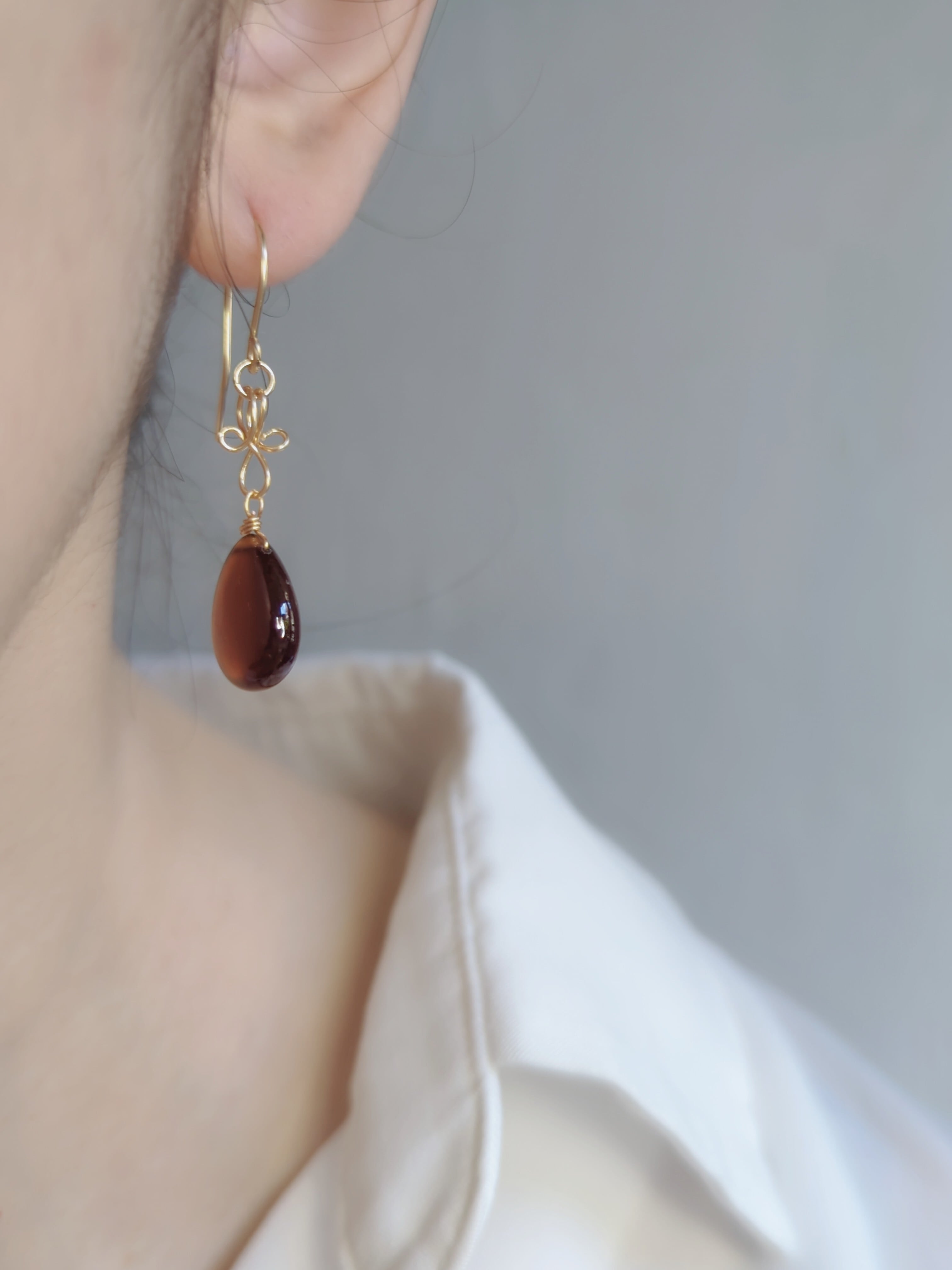 存在感がありつつ落ち着いた色味の大人カラーなピアスとなっています