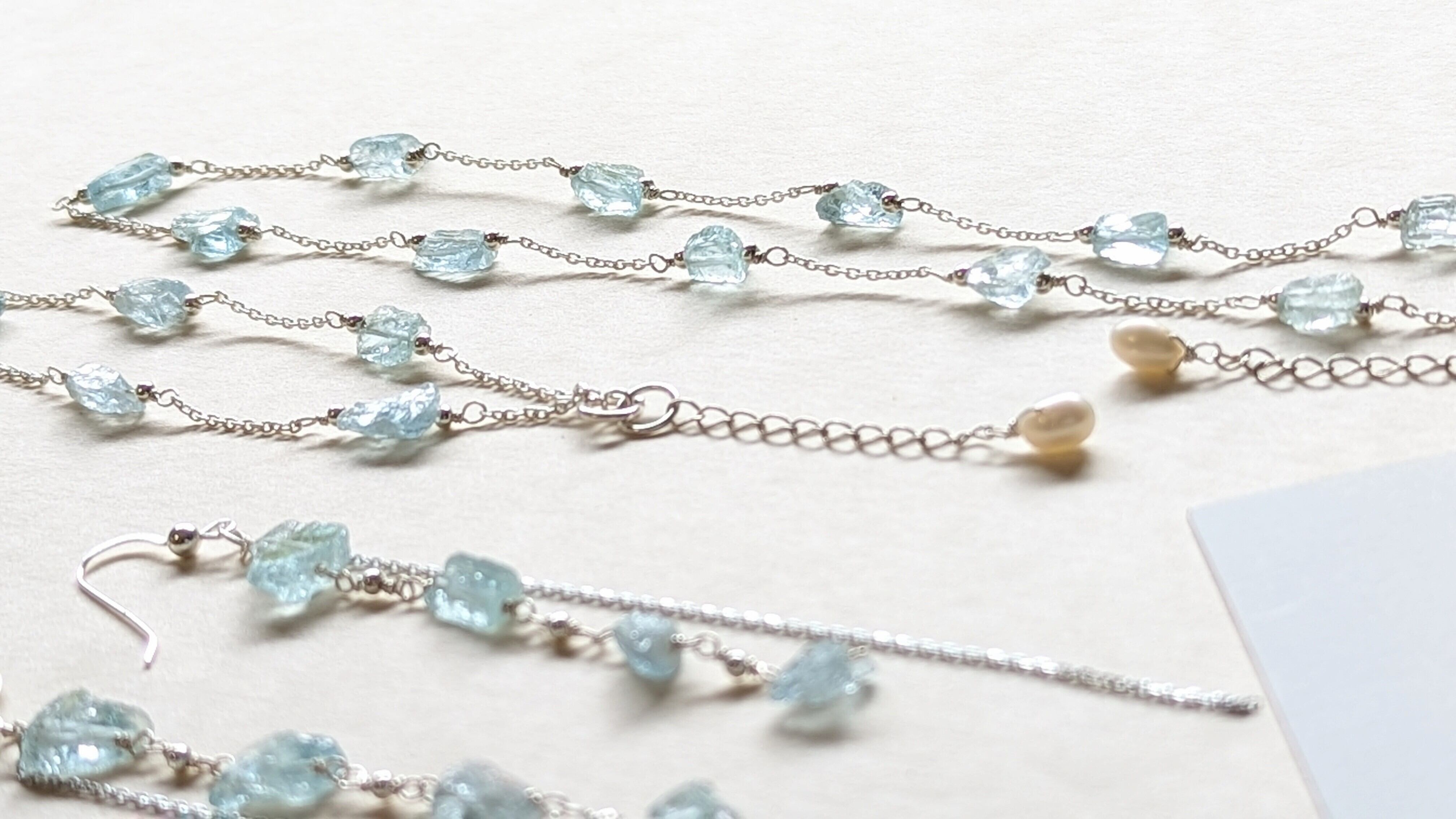 氷の欠片のようなアクアマリンの原石(ラフロック)を仕立てました