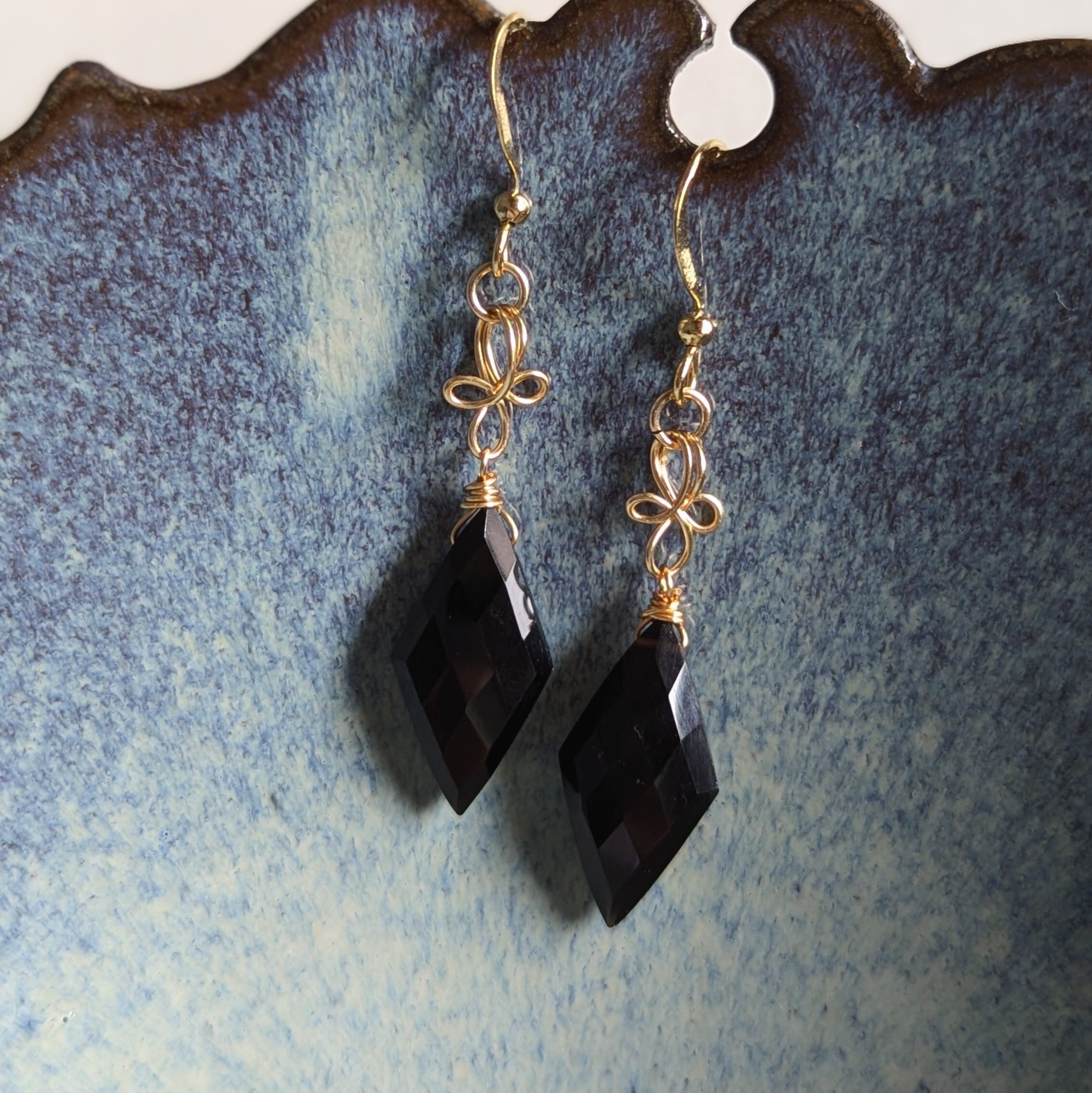 ダイヤの形がかっこいいモリオン(黒水晶)のピアスです