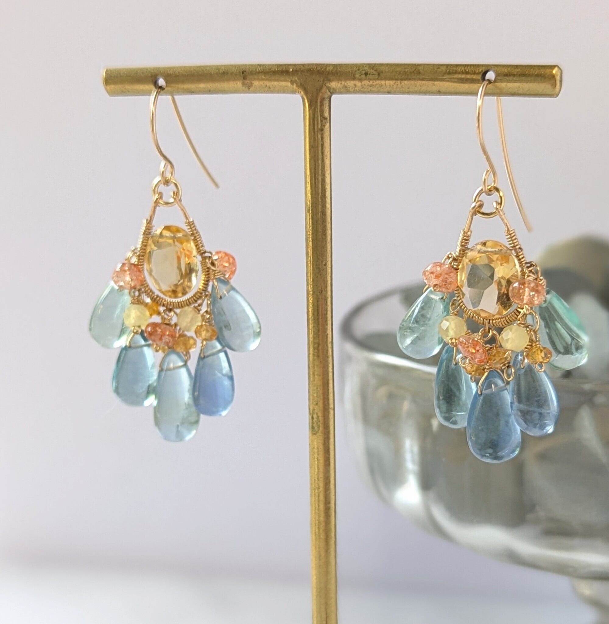 海のようなブルーが美しいアフガニスタン産のフローライトとシトリンをボリュームたっぷりに仕立てました