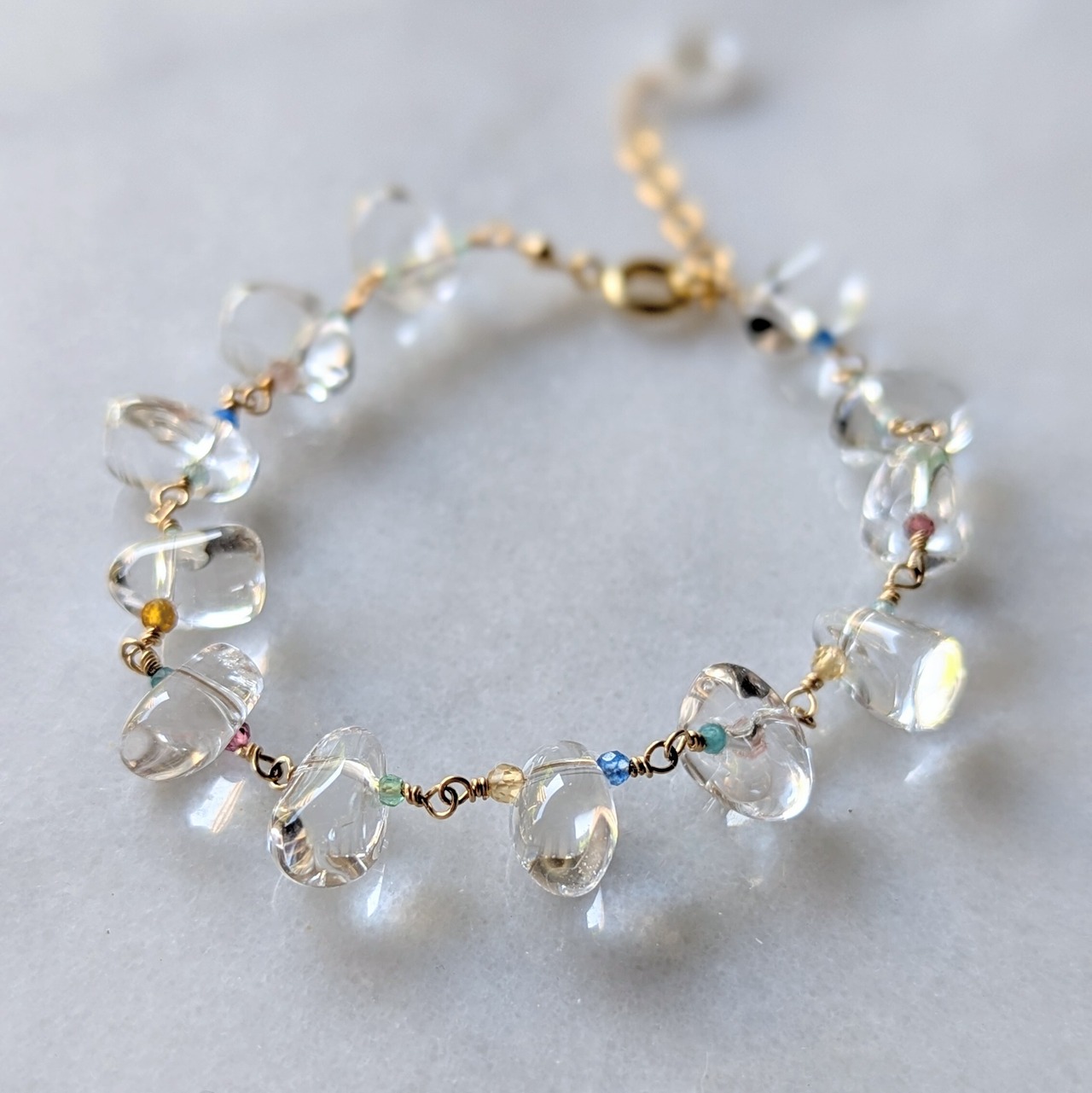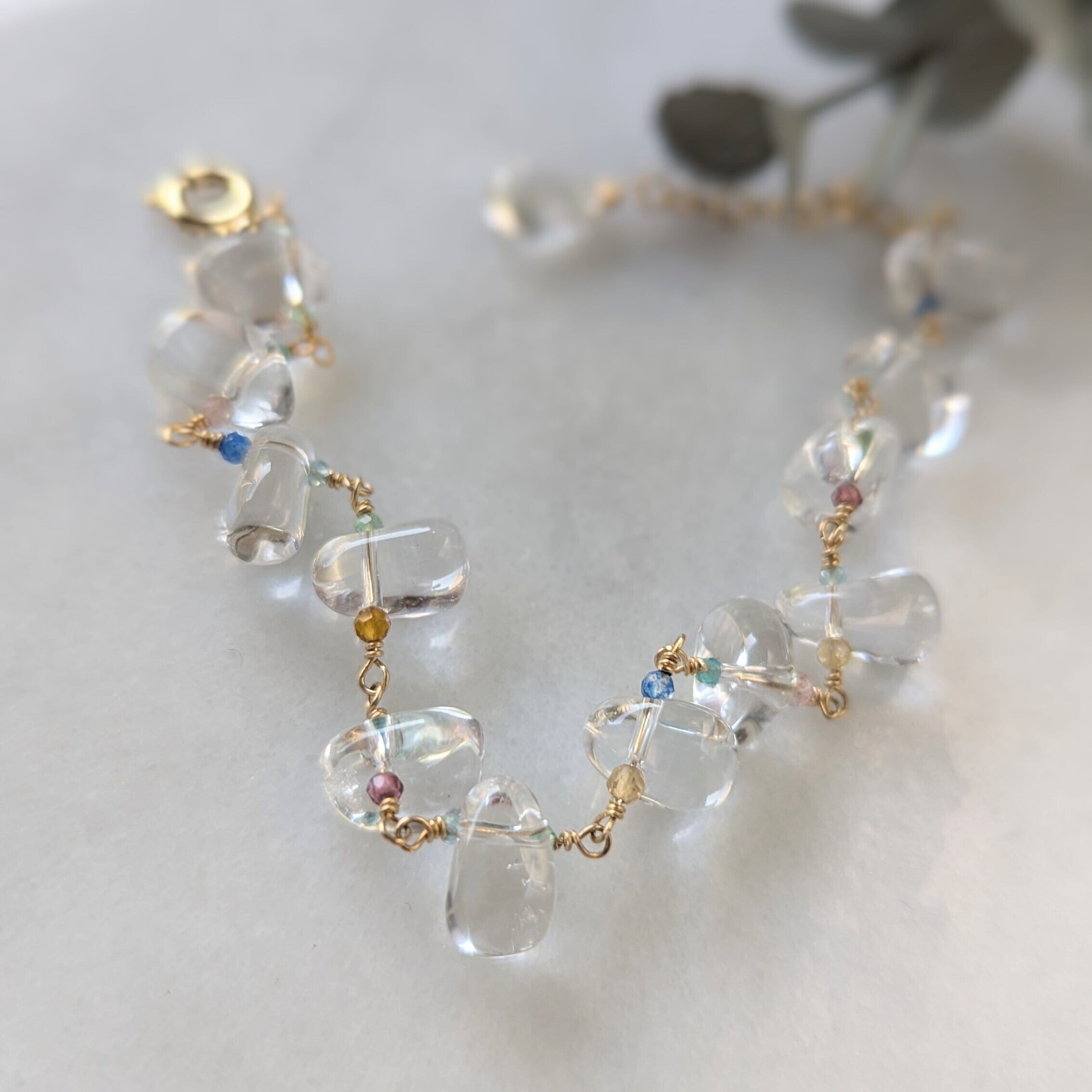 天然クリスタルとマルチストーンのブレスレット 14kgf 天然石